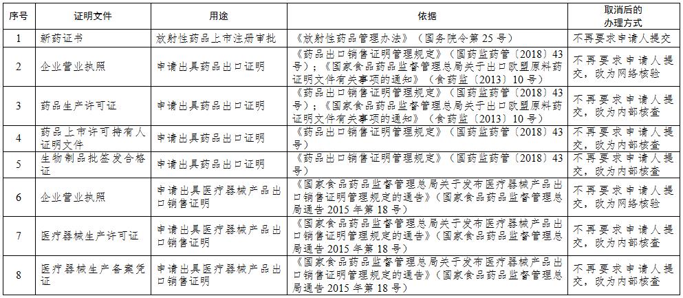 國家藥監(jiān)局關(guān)于取消8項(xiàng)證明事項(xiàng)的公告(第四批)