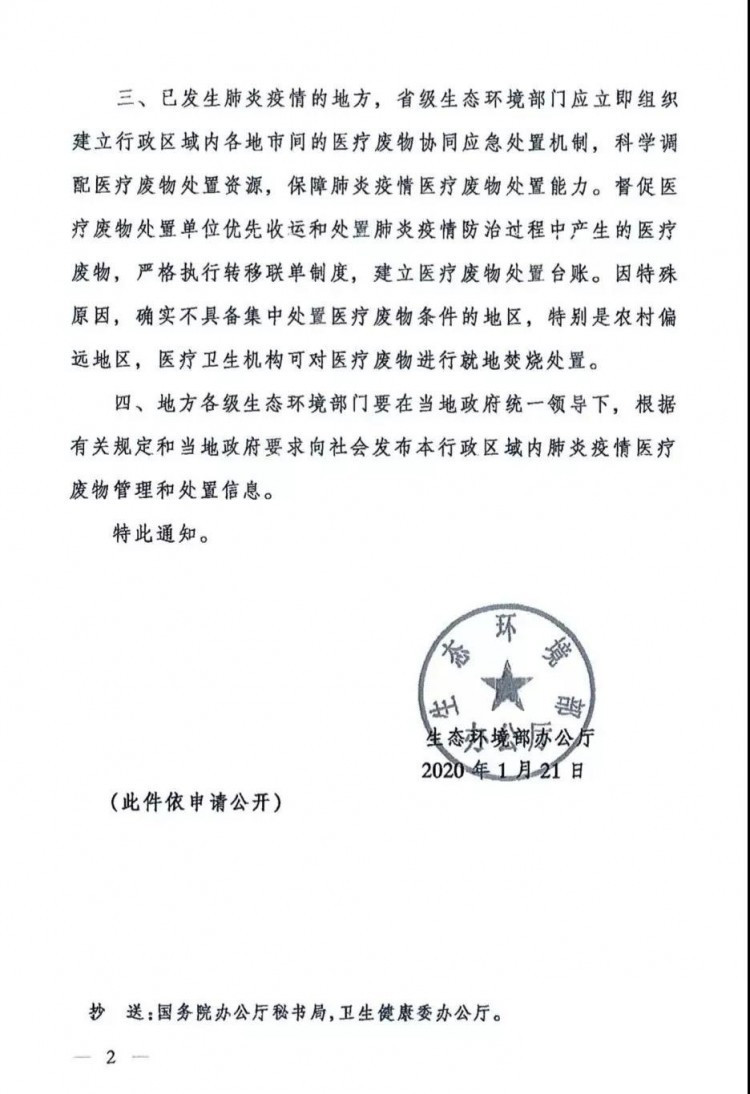 生態(tài)環(huán)境部辦公廳關(guān)于做好新型冠狀病毒感染的肺炎疫情醫(yī)療廢物環(huán)境管理工作的通知