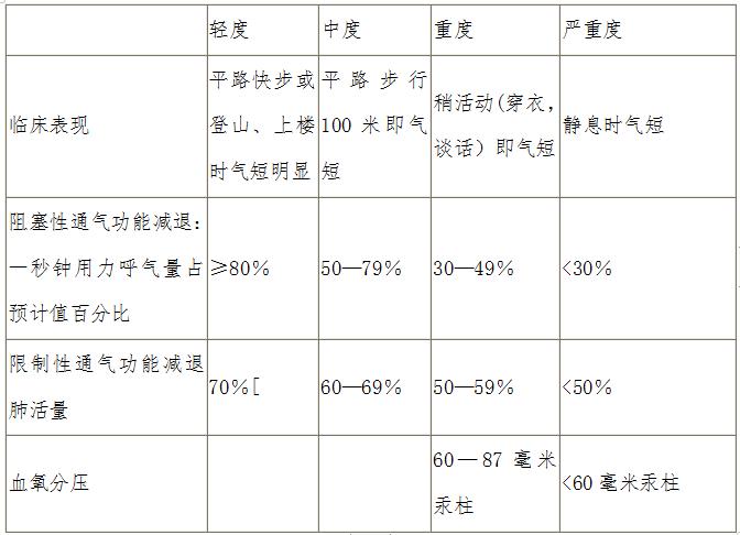 5.2 呼吸困難及肺功能減退判定基準(zhǔn)