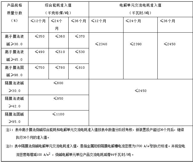 新建、改擴建燒堿裝置產(chǎn)品單位能耗限額準入值