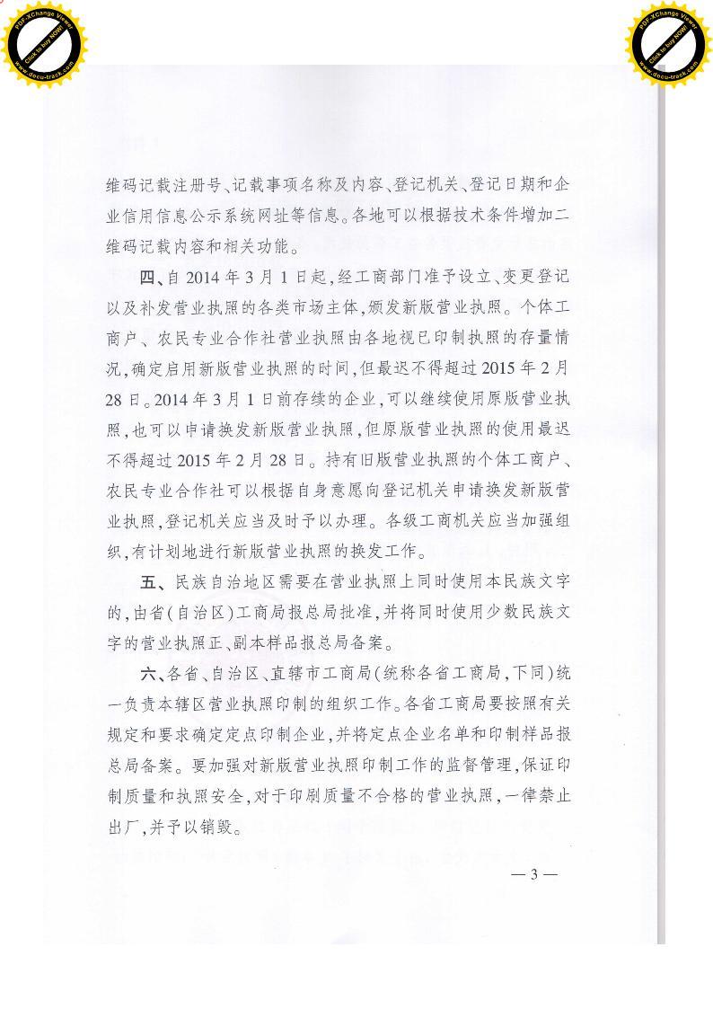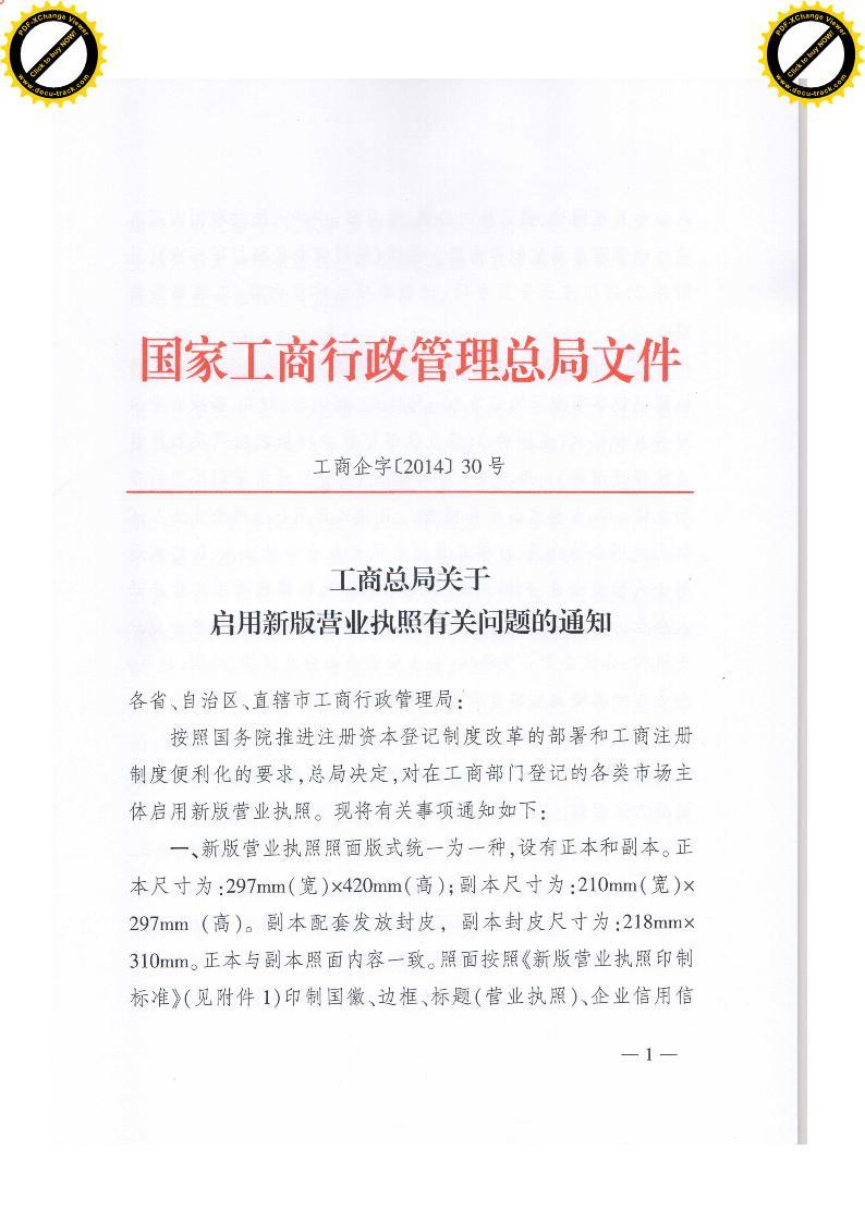 工商企字〔2014〕30號(hào)《工商總局關(guān)于啟用新版營業(yè)執(zhí)照有關(guān)問題的通知》【全文廢止】