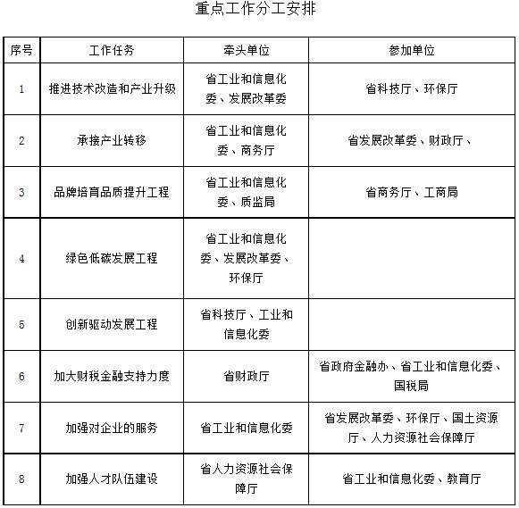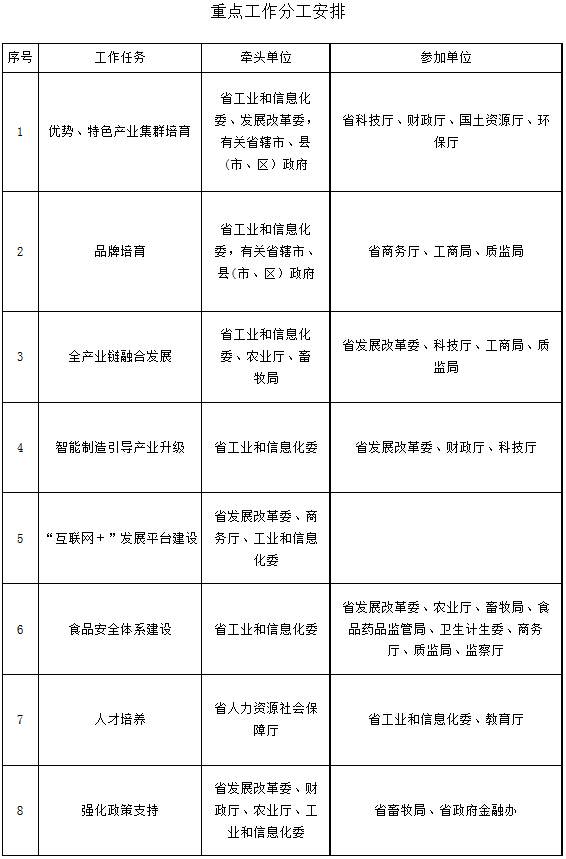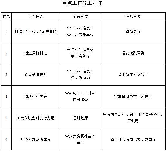 (一)加大項(xiàng)目推進(jìn)力度。省直有關(guān)部門(mén)按照職責(zé)分工做好相關(guān)工作。省級(jí)重點(diǎn)抓龍頭,市級(jí)重點(diǎn)抓基地,縣級(jí)重點(diǎn)抓特色,省、市、縣三級(jí)要在產(chǎn)業(yè)布局、項(xiàng)目建設(shè)、集群集聚、鏈條完善、政策資金扶持等方面凝聚合力,協(xié)調(diào)聯(lián)動(dòng),強(qiáng)力推進(jìn)。