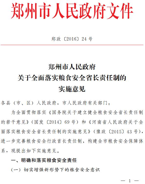 本文關鍵詞: 鄭政, 鄭州市, 全面落實, 糧食安全, 省長, 責任制, 實施意見