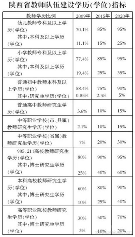 38.加強教師培養(yǎng)培訓。優(yōu)化教師教育布局結(jié)構(gòu),擇優(yōu)確定并重點建設教師教育基地,構(gòu)建以師范院校為主體、綜合性大學參與、職前職后教育貫通、學歷非學歷教育并舉的現(xiàn)代教師教育體系,促進教師專業(yè)發(fā)展和終身學習。探索建立面向農(nóng)村、邊遠地區(qū)和薄弱學校的幫扶機制,著力解決農(nóng)村中小學教師結(jié)構(gòu)性缺編問題。深入實施“農(nóng)村學校教師特設崗位計劃”和“農(nóng)村教育碩士師資培養(yǎng)計劃”,鼓勵和引導高校優(yōu)秀畢業(yè)生到農(nóng)村學校任教。加強職業(yè)院校“雙師型”教師隊伍建設,實施中等職業(yè)學校教師素質(zhì)提高計劃,建設中等職業(yè)教育師資培訓基地。建立學校、行業(yè)、企業(yè)共同培養(yǎng),在崗研修與企業(yè)實踐并重的“雙師型”教師培養(yǎng)培訓體系,提高具有實踐經(jīng)驗的專業(yè)技術(shù)人才和高技能人才擔任兼職教師的比例。到2015年,重點建設2至3所以培養(yǎng)本科層次職業(yè)教育師資為主要任務的高等學校和10個中等職業(yè)教育師資培訓基地,中等職業(yè)學校和高等職業(yè)院校“雙師型”教師分別達到專業(yè)教師的50%、80%。加大高校教師創(chuàng)新能力培養(yǎng)培訓力度。實施“百人計劃”和“三秦學者計劃”,加大海外高層次人才引進力度,為高校集聚具有國際影響力的學科領軍人才。實施“高校英才計劃”,重點支持省屬高校培養(yǎng)引進高層次人才。實施“中小學教師素質(zhì)提升工程”,著力提高教師、校長的學歷層次和專業(yè)素質(zhì)。抓好校本研訓,鼓勵教師全員參與教研教改。重點建設18個省、市兩級教師培訓機構(gòu)和30個省級示范性縣級教師培訓機構(gòu)。堅持五年一個周期的教師培訓制度,每個教師每五年應接受不低于240課時的集中培訓。加強校長培訓,提高校長管理學校的能力和水平,建設一支高素質(zhì)的校長隊伍。開展農(nóng)村義務教育階段教師全員培訓模式改革試點。加大教師培訓投入,將培訓經(jīng)費列入各級政府財政預算,并向農(nóng)村教師和特殊教育教師培訓傾斜。