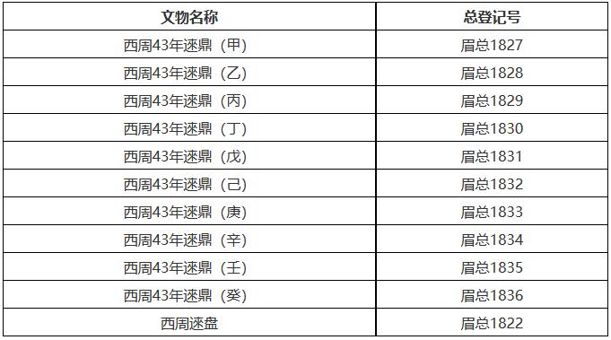 一、同意所報(bào)西周四十三年逨鼎(甲)(總登記號(hào):眉總 1827)等11件館藏一級(jí)文物(清單見附件)復(fù)制拓印事項(xiàng)。復(fù)制數(shù)量各1件,拓印數(shù)量各2件,用于國(guó)內(nèi)博物館借展及本館研究、展示。