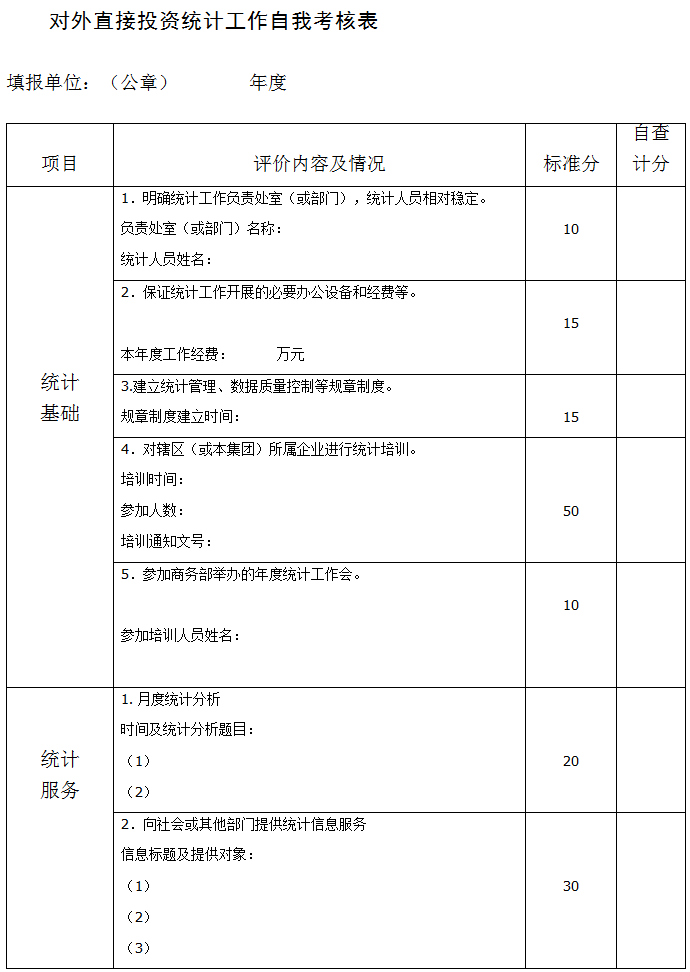 附表:對外直接投資統(tǒng)計工作自我考核表