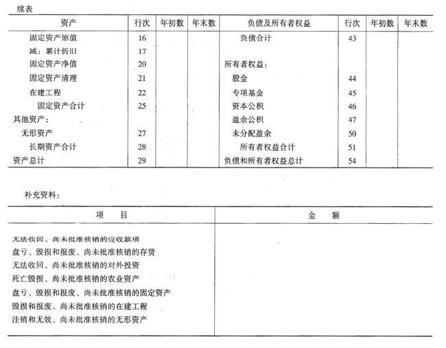 2.本表“年初數(shù)”欄內(nèi)各項數(shù)字,應(yīng)根據(jù)上年末資產(chǎn)負債表“年末數(shù)”欄內(nèi)所列數(shù)字填列。如果本年度資產(chǎn)負債表規(guī)定的各個項目的名稱和內(nèi)容同上年度不相一致,應(yīng)對上年末資產(chǎn)負債表各項目的名稱和數(shù)字按照本年度的規(guī)定進行調(diào)整,填入本表“年初數(shù)”欄內(nèi),并加以書面說明。