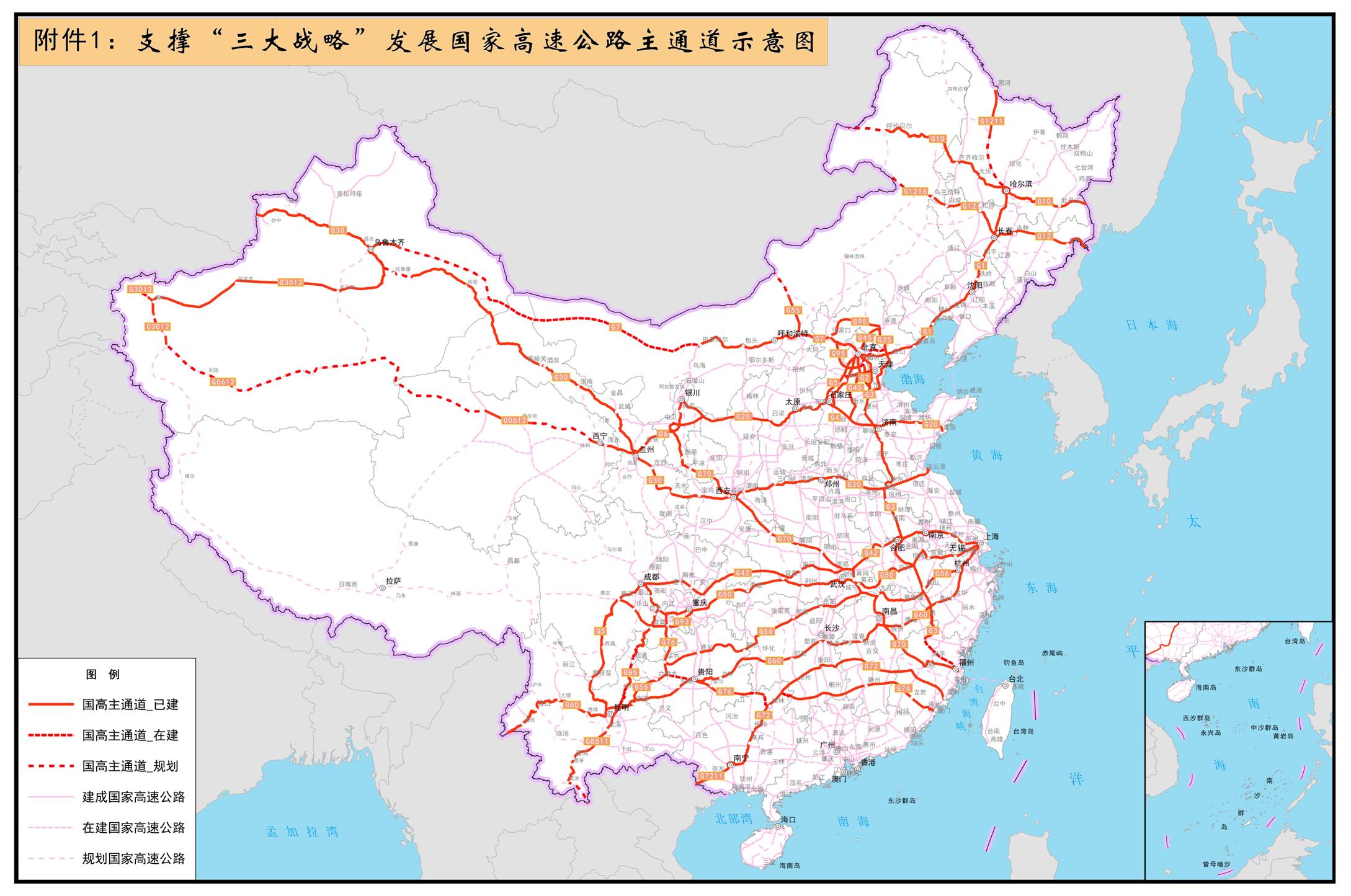 1. 支撐“三 大戰(zhàn)略”發(fā)展國家高 速公路主通道示意圖
