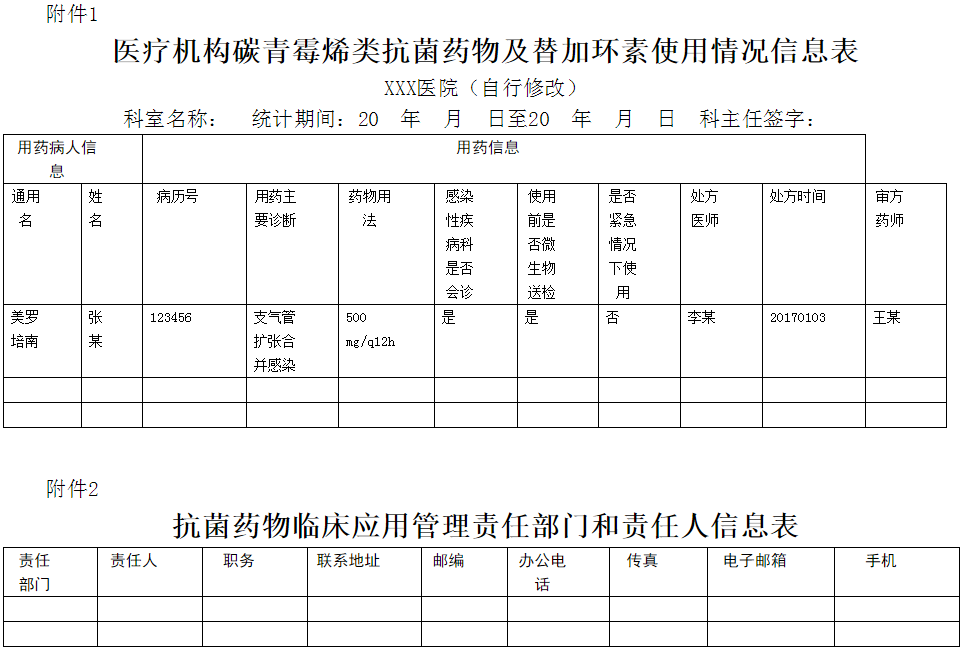 1.醫(yī)療機(jī)構(gòu)碳青霉烯類抗菌藥物及替加環(huán)素使用情況信息表