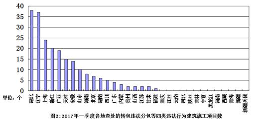 現(xiàn)將2017年一季度各地住房城鄉(xiāng)建設(shè)主管部門上報(bào)的建筑工程施工轉(zhuǎn)包違法分包等違法行為查處情況通報(bào)如下: