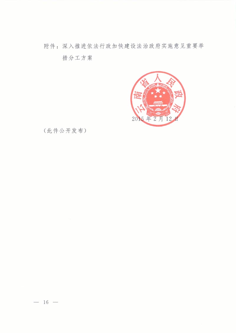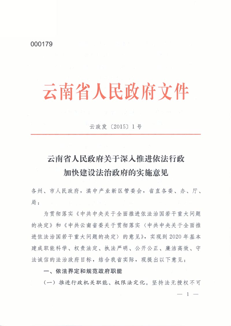 云政發(fā)〔2015〕1號《云南省人民政府關(guān)于深入推進(jìn)依法行政加快建設(shè)法治政府的實施意見》