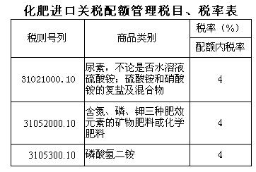 一、化肥進(jìn)口關(guān)稅配額管理稅目、稅率表