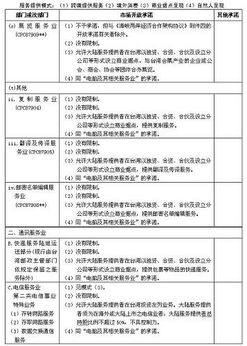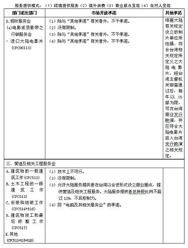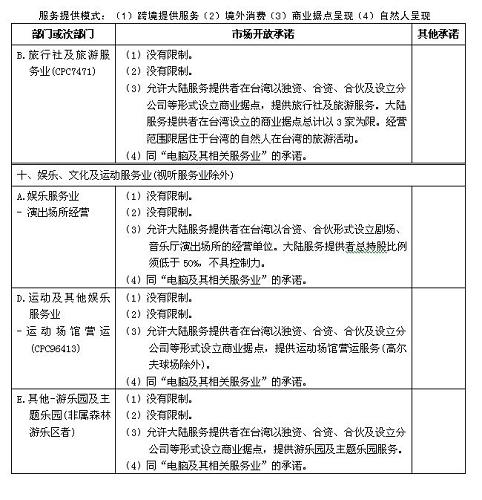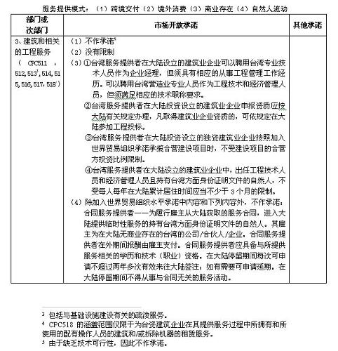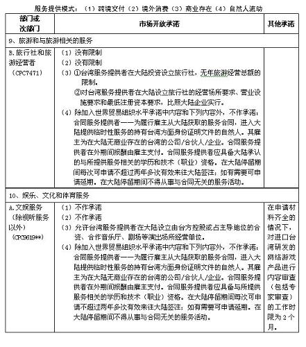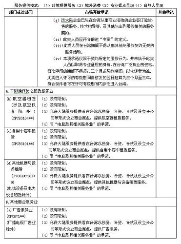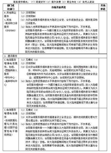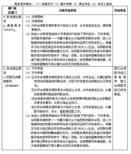 四、本協(xié)議附件一及《海峽兩岸經(jīng)濟合作框架協(xié)議》附件四所列服務部門及市場開放承諾適用本協(xié)議附件二關于服務提供者的具體規(guī)定。