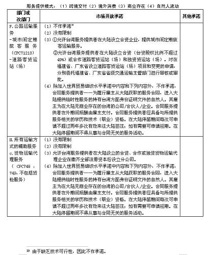 (六)雙方有關海運協(xié)議的相關措施,但不包括《海峽兩岸經(jīng)濟合作框架協(xié)議》及其后續(xù)協(xié)議項下的服務貿(mào)易市場開放承諾表所列措施;