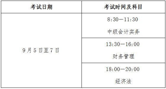 1.中級資格考試于2020年9月5日至7日舉行,共3個批次,各科目具體考試時間如下: