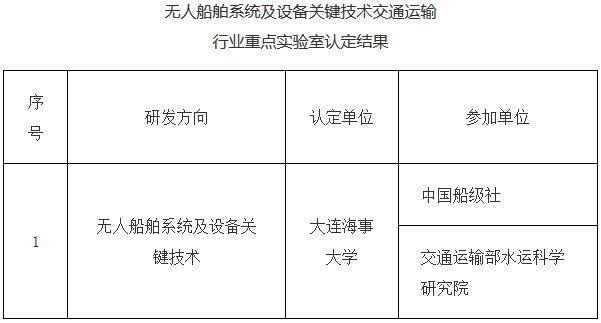 交通運(yùn)輸部關(guān)于公布無(wú)人船舶系統(tǒng)及設(shè)備關(guān)鍵技術(shù)交通運(yùn)輸行業(yè)重點(diǎn)實(shí)驗(yàn)室認(rèn)定結(jié)果的通知