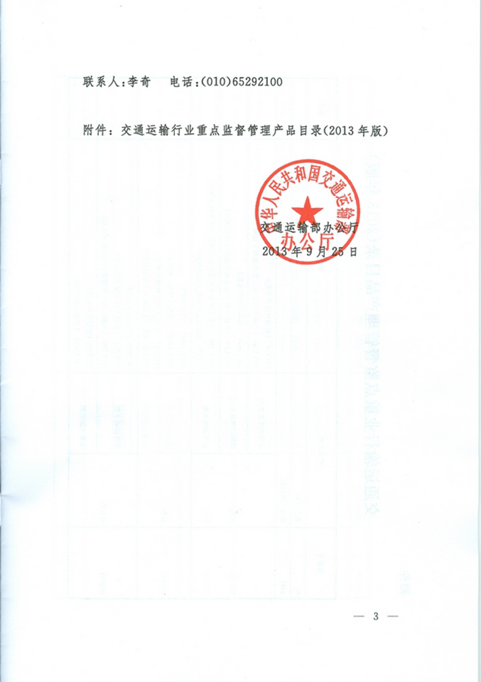 廳科技字〔2013〕258號《交通運(yùn)輸行業(yè)重點(diǎn)監(jiān)督管理產(chǎn)品目錄》(2013年版)