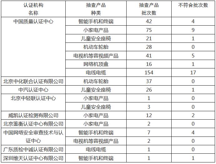 有關(guān)認(rèn)證機(jī)構(gòu)涉及的抽查產(chǎn)品種類、批次數(shù)、不符合批次數(shù)詳見下表。
