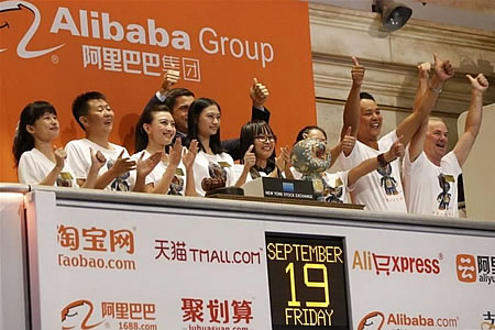 2014年9月19日,阿里巴巴在紐交所正式進行IPO,股票交易代碼為“BABA”。發(fā)行價最終確定為每股68美元,以218億美元的融資額創(chuàng)造了美股史上的最大規(guī)模的IPO。開盤價報92.7美元,阿里巴巴從而一舉超越Facebook成為僅次于谷歌的第二大互聯(lián)網(wǎng)公司。
