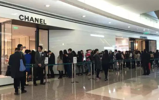 19日16時(shí),上海某商場(chǎng)內(nèi)香奈兒門店門口,顧客排起長(zhǎng)隊(duì)。