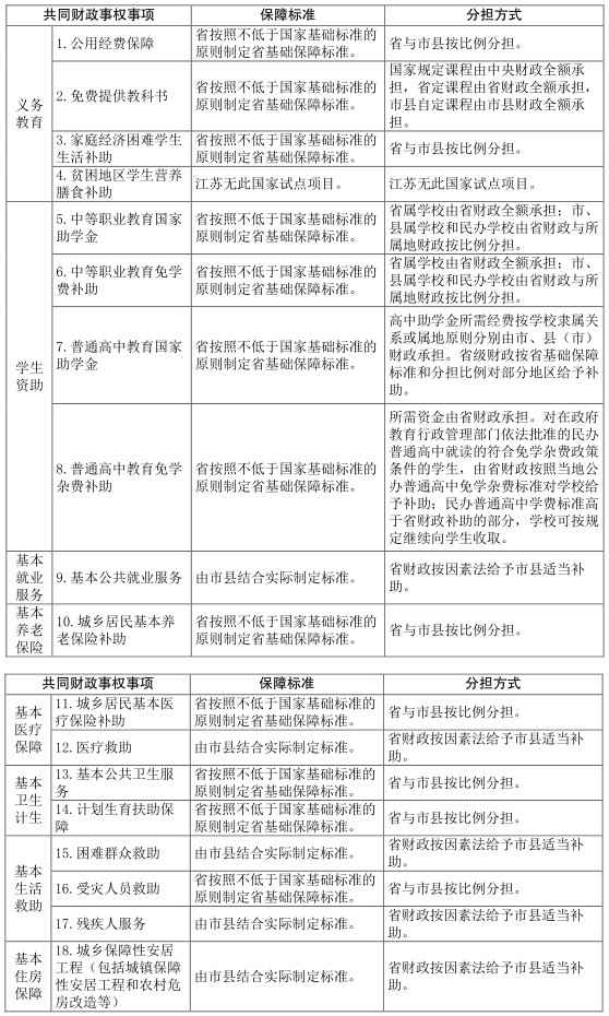 江蘇省人民政府辦公廳關(guān)于印發(fā)基本公共服務(wù)領(lǐng)域省與市縣共同財(cái)政事權(quán)和支出責(zé)任劃分改革方案的通知