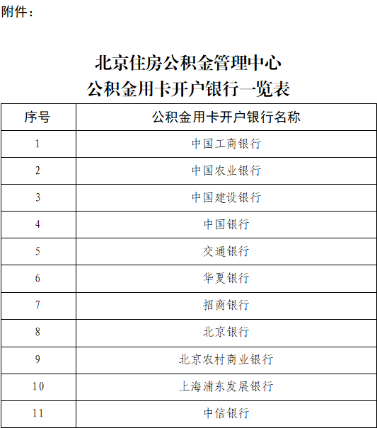 附件:北京住房公積金管理中心公積金用卡開戶銀行一覽表
