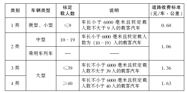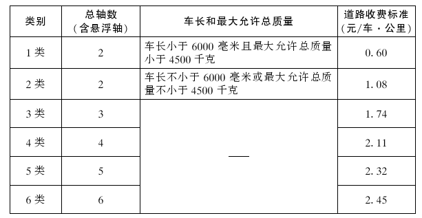 三、收費(fèi)標(biāo)準(zhǔn):除國(guó)家規(guī)定免繳通行費(fèi)的車輛外,其他車輛均按以下標(biāo)準(zhǔn)繳納車輛通行費(fèi)。