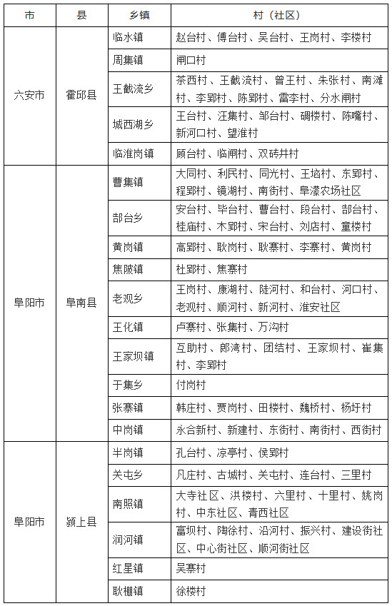 一、自通告發(fā)布之日起至2025年12月31日,臨淮崗水資源綜合利用工程安徽段永久征地范圍為禁止新增建設項目并控制人口遷入區(qū)域(以下簡稱“控制區(qū)”)。控制區(qū)涉及:六安市霍邱縣,阜陽市阜南縣、潁上縣,共計21個鄉(xiāng)鎮(zhèn)104個村(社區(qū))。