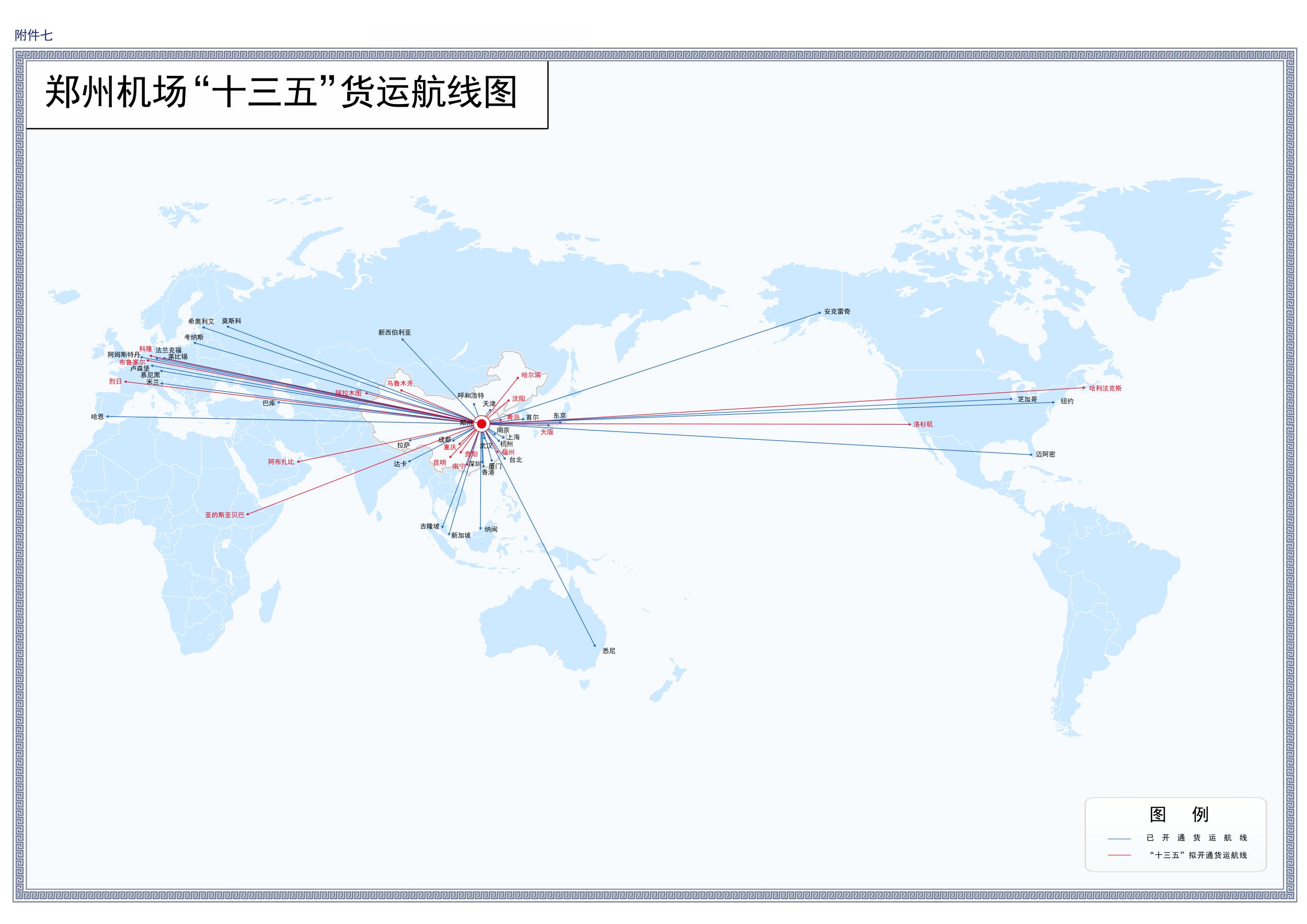 7.鄭州機(jī)場(chǎng)“十 三五”貨運(yùn)航線圖