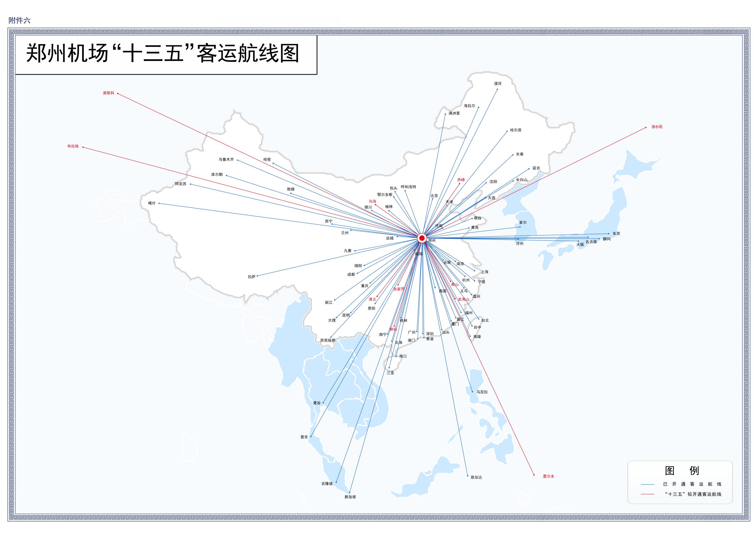 6.鄭州機(jī)場(chǎng)“十 三五”客運(yùn)航線圖