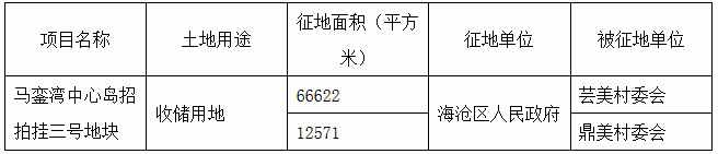 廈門(mén)市人民政府關(guān)于馬鑾灣中心島招拍掛三號(hào)地塊項(xiàng)目建設(shè)用地土地征收的通告