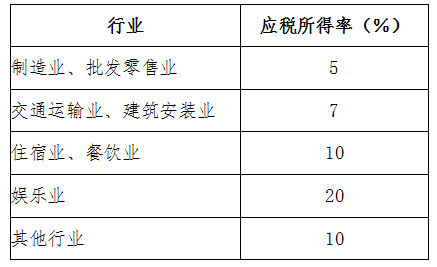 應(yīng)稅所得率按下表規(guī)定的標(biāo)準(zhǔn)執(zhí)行: