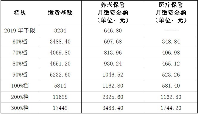 (三)醫(yī)療保險的繳費檔次標準,將根據(jù)新社平工資(5814元)進行調(diào)整。